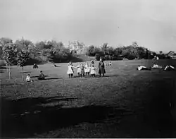 Denny Park is Seattle's oldest park. In 1861 pioneer David Denny donated the land to the city as Seattle Cemetery. In 1883, the graves were removed and the cemetery was converted to a park, the city's first. By 1904, the surrounding area had become residential, and the park was improved with formally designed planting beds, swings and other play equipment, a sand lot and a play field. The Denny School, an elementary school, stood slightly southeast of the park from 1884 to 1928.[1] Children were, from the earliest, regular users of the park.