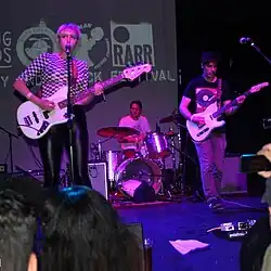 Dentist is an alternative surf rock trio from Asbury Park, New Jersey, that formed in 2013. The band is composed of vocalist and bassist Emily Bornemann, guitarist Justin Bornemann, and drummer Matt Hockenjos. E. Bornemann and J. Bornemann previously played together in the Asbury Park indie rock group, No Wine for Kittens.[1] Their music is described as the "combine[d] freedom of the beach atmosphere and the urgency of the city into a fuzzed out, surf punk-tinged brand of indie pop with hooks and infectious melodies," they draw comparison to the music of Best Coast, Wavves and the Drums.[2][3]