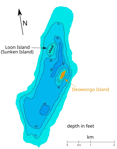 ![]() West side of Deowongo Island in summer 2018 | |