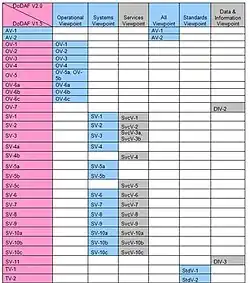 - ^ Evolution of DoDAF V1.5 Views to DoDAF V2.0 Viewpoints