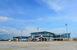 The terminal building covers 12,000 square meters of the total 152-hectare land area and can accommodate up to 3.2 million passengers annually.[11][12] The terminal features a modern design and is equipped with enhanced amenities such as food courts, an executive break room, internet access, disabled-friendly toilets, and a dedicated mother and child room. Other facilities include 12 check-in counters, three departure gates, and three jetbridges.[11] The expanded parking area can accommodates 300 cars and 120 motorcycles.