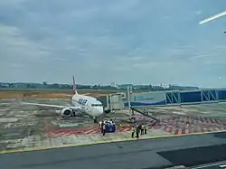 A new terminal, located to the northeast of the old terminal across the runway, was inaugurated by President Joko Widodo on March 14, 2019.[7] After its opening, all airport operations were relocated to the new terminal, and the old terminal was abandoned, gradually falling into disrepair. Although there have been proposals to repurpose the old terminal as a bus terminal, these plans have yet to be realized.[8]