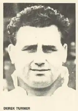 Derek Turner (13 November 1932 – 31 July 2015), also known by the nickname of "Rocky", was an English World Cup winning professional rugby league footballer who played in the 1940s, 1950s and 1960s, and coached in the 1960s, 1970s and 1980s. He played at representative level for Great Britain, England, Yorkshire and Great Britain & France, and at club level for Hull Kingston Rovers, Oldham and Wakefield Trinity (captain), with whom he won three Challenge Cup Finals, as a second-row, or more usually loose forward,[2][5] and coached at club level for Castleford, Leeds and Wakefield Trinity.[6][7]
