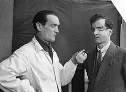 Francis Derwent Wood checking a mask for a patient during World War 1
