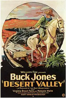 Desert Valley is a 1926 American silent Western film directed by Scott R. Dunlap and written by Randall Faye based upon a novel by Jackson Gregory. The film stars Buck Jones, Virginia Brown Faire, Malcolm Waite, Jack W. Johnston, Charles Brinley, and Eugene Pallette. The film was released on December 26, 1926, by Fox Film Corporation.[1][2][3]