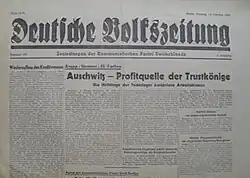 Deutsche Volkszeitung ('German People's Newspaper', abbreviated DVZ) was a newspaper published daily from Berlin, Germany between 1945–1946.[1][2][3] It was the organ of the Central Committee of the Communist Party of Germany (KPD).[1][4]