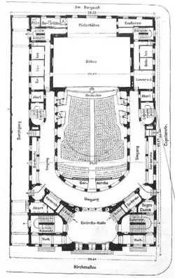 The Deutsches Schauspielhaus was co-founded by stage actress Franziska Ellmenreich.[1] It was designed by Austrian architects Fellner & Helmer, built between 1899 and 1900,[2] and opened its doors in 1901.[3]