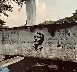 Sheikh Rahman's youngest son Sheikh Russel was born in this house on 18 October 1964.[10] In 1966, the house was extended to two storeys and became a complete residential building where many important events in the political history of Pakistan, such as the six point movement, 1969 East Pakistan mass uprising, 1970 Pakistani general election, occurred. It was the centre of political activities of Sheikh Rahman and the Pakistan Awami League.[9] On 23 March 1971, Sheikh Mujibur Rahman officially hoisted the flag of Bangladesh for the first time at 32 Dhanmondi. According to his pre-announced instructions, a general holiday is observed across the country on this day.[11] On the night of 25 to 26 March 1971, Sheikh Rahman proclaimed the independence of Bangladesh in the house shortly before the Pakistani army arrested him.[12][13]