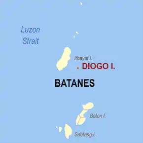 Diogo is a small, round island over 1,795 feet (547 m) high, about 3⁄4 mile (1.2 km) in diameter, lying 3.5 miles (5.6 km) southeastward of Itbayat Island. It is steep on the western side but has several small islets lying off its eastern side - the outermost being nearly 1⁄2 mile (0.80 km) distant.[4]
