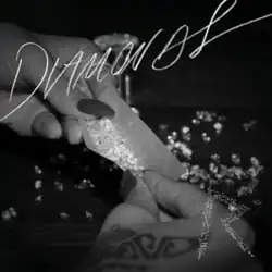"Diamonds" has a length of three minutes and forty-five seconds.[16] The lyrics are composed in two main stanzas with the repetition of the chorus sung six times in the song using variations of the main verse depicting "diamonds in the sky".[21] Allmusic critic Andy Kellman characterized it as a mid-tempo pop ballad,[22] while Michael Baggs of Gigwise described it as a mid-tempo electronic song.[23] Time Out's James Manning described the song as a "somber" R&B ballad.[24] It features heavy synthesizers,[25] orchestral sounds and electronic rhythms accompanying Rihanna's vocal performance.[26] Rolling Stone magazine wrote that "the track's production mainly stays out of Rihanna's way, letting the pop star build hooks with layers of her voice."[26] In a review of Unapologetic, Stacy-Ann Ellis of Vibe noted that an improvement in the singer's singing is evidenced by ballads such as "Diamonds" and "Stay". According to EMI Music Publishing's digital sheet music for the song, "Diamonds" is composed in the key of B minor and set in common time signature, and has a moderately slow groove of 92 beats per minute.[27] Rihanna's vocals span from the low note of F3 to the high note of F5.[27]