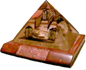 The Diana Jones trophy was originally created as a keepsake in the UK offices of TSR in the mid 1980s to commemorate the ending of their license to publish The Adventures of Indiana Jones Role-Playing Game.[5] The trophy itself was a lucite pyramid containing the burnt remains of the last unsold copy of the game; all that was legible of the title was "diana Jones".[5] (There is no relation of the award with fantasy author Diana Wynne Jones.) The trophy was "liberated" and eventually ended up with the Diana Jones committee.[6] The destruction of "one of the least-loved and critically savaged games of all time" was seen an appropriate symbol for an award for excellence in gaming.[2][7] The trophy also contains a counter that reads "Nazi™" from the game.[8] While the trademark claim was present at Lucasfilm's insistence, it led to rumors that TSR had tried to trademark the term.[8]