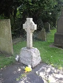 Thousands accompanied his body through the Vale of Glamorgan to his grave (various parishes en route refusing to accept the responsibility of interment), and listened to a funeral sermon from his brother-in-law Morgan Howells.[5] He was buried in St Mary's churchyard in Aberavon, Port Talbot, where a memorial was placed by local trade unionists in 1966.[9] There is a plaque to Dic Penderyn at Cardiff Market, near to the gallows site.[10] Regarded as a martyr, his death further embittered relations between Welsh workers and the authorities and strengthened the Trade Union movement and Chartism in the run up to the Newport Rising.