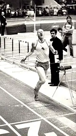 ![]() Buerkle setting world record for indoor mile (3:54.9) on January 13, 1978 | |