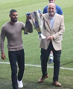 ![]() Dickie Guy lifting the EFL play-off's trophy. | |||