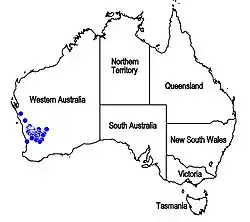 It is found in the IBRA regions of Avon Wheatbelt, Coolgardie, and the Geraldton Sandplains.[5]