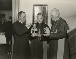 ![]() Venini presents Bishop Joseph Schrembs a chalice from Pope Pius XI | |