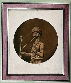 ![]() The Nawāb of Farrukhabad, Muzaffar Jang, smoking a hookah | |