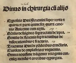 He then returned to Bologna and in 1311 began his Dilucidatorium totius pratice medicinalis scientie, a commentary on part of Book I of the Canon. After several years of teaching in Padua, in 1319 he returned to Florence and there completed his Dilucidarium. In 1321, in the wake of the Medicine and Arts Faculties' exodus from Bologna to Siena, he was re-appointed by the municipality of Siena, this time at an exorbitant annual salary of 350 gold florins. He taught in Siena until 1323 and during this time worked on his commentary on treatment using medicinal plants in book II of Avicenna's Canon, a work which he completed in 1325 after returning to Florence and which he dedicated to Robert of Anjou. He also produced a Latin commentary on Guido Cavalcanti's love poem Donna me prega, possibly during these final years in Florence - it is preserved in a manuscript of Boccaccio and was translated to an extended vernacular version.