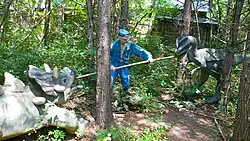 Dinosaur Kingdom II (also called Escape From Dinosaur Kingdom) is a tourist attraction in Natural Bridge, Virginia, consisting of statues which depict a dinosaur attack on the Union Army. The park contains thirty fiberglass dinosaur statues, a smaller number of Union soldiers, and several other characters, including Abraham Lincoln and a gorilla in a cowboy hat.[1] Dinosaur Kingdom, which opened in 2005, is the work of local artist Mark Cline, who also created nearby Foamhenge.[1]