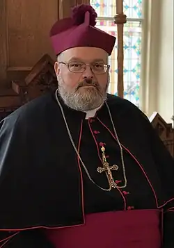 In March 2008, The Rev. Damien Mead was elected by the Diocese to be the second Bishop Ordinary.[12] Previously, Mead had been the Vicar General. On 20 September 2008, he was consecrated as bishop by Starks (ACC Bishop of the Diocese of the Midwest, USA), The Right Rev. Arthur Roger Dawson (ACC Retired Bishop of Caracas, Venezuela), and The Right Rev. Denis Ian Dermot Hodge (ACC Bishop of New Zealand).[13][14][15]