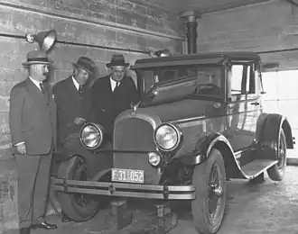 His concerns materialized two days later. On the evening of May 29, near Santa Barbara, a reporter tracked Ormiston's blue Chrysler sedan coupe, and flagged it down. After examining the driver and his female passenger, the reporter determined while the man was Ormiston, he could not identify the woman, "Miss X," as McPherson.[107] As the result of the incident, a Santa Barbara Morning Press article headline later read: Road Watched for Ormiston and Evangelist.[108]