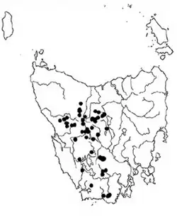 Distribution map of Diselma archeri showing restriction to the South West and Central Plateau of Tasmania
