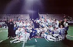 The Division Avenue football team were the 1996 New York State Rutgers Cup champions.[9] Division has also racked up many accomplishments in other sports. In recent years, the girls' bowling team has won two county titles, and the wrestling, girls' soccer, and girls' volleyball teams have won conference titles. The baseball, boys' and girls' lacrosse, and softball teams have all advanced to the county semifinals or beyond in the past few years as well. In boys' lacrosse, Division has produced 13 All-Americans, including Maryland's all-time leading goal scorer, Bob Boniello. They were also 2010 Conference B Champs, tied with Garden City and Wantagh for first place.[10] The Division cross country team won back-to-back New York State Class C Championships in 1969–70. The baseball, girls' basketball, and both the boys' and girls' lacrosse teams play in the top conference of their respective classes. During the 2009–2010 school year, both the girls' soccer and girls' basketball teams went to the Nassau County finals. The girls' basketball team defeated Lynbrook for the first county title in the program's history. The Lady Dragons went on to claim the Class A Long Island Championship. In the 2017 season, Division Lady Dragons girls lacrosse was ranked number one in their conference, winning the conference championships.
