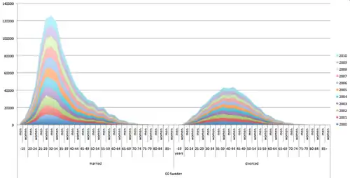 | Divorce Rates Trend in Sweden 2000-2010 [5] | |