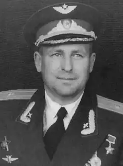 After returning from Korea he remained in the Air Force, being promoted to squadron commander within his regiment in 1957. In March 1958 he became the deputy commander for flight training in the 224th Fighter Regiment before entering the reserve in July 1960. After graduating from an Engineering College in 1965 he worked as an engineer in Elektrostal until 1988. He lived there for the remainder of his life until he died on 15 August 2012.[5]