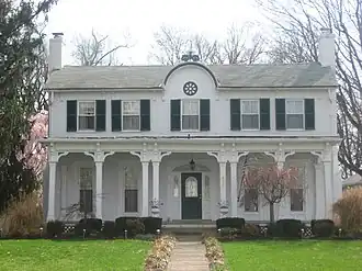 The Doan House was constructed in 1840 as the home of James Wilson,[2]: 149  who with his wife Eleanor was the superintendent of the Clinton County Infirmary from 1836 until 1840.[3]: 355  In 1869, the property was purchased by Azariah Doan, a prominent Wilmington lawyer and Civil War veteran. During the time that the Doans owned the house, they modernized it by adding numerous Italianate features to the original Federal-style components. For much of its history, the Doan House was a prominent travellers' landmark, as it was the city's easternmost house and the first or last portion of the city to be reached by those travelling into or out of the city's eastern side.[2]: 149