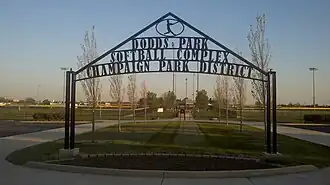 Dodds Park is located in northwestern Champaign, Illinois near Parkland College. This 110-acre (45 ha) park (roughly one fifth of the total Park District holdings) is noted for the "Tribute to Olympic Athletes Monument" on its grounds. The park was purchased in 1969 for the sum of $298,495.