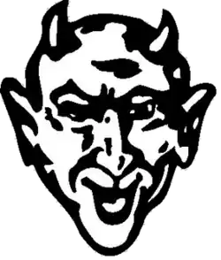 In 1927, a newspaper writer for the Dodge City Globe writer mistakenly began referring to the school’s teams as the Red Demons due to the nickname of “D-Men” for the letter-jackets worn by the Dodge men's teams. The name stuck until 1932 when the controversial mascot was replaced by the Pilldilly - a Jayhawk looking bird made up of the letters D-C-H-S. However, in 1940 - the Demon returned and became the official mascot of Dodge City Senior High School. According to the 1944 yearbook, sub-varsity teams began using the name “Cowboys” and “Demons” was reserved solely for varsity teams. In 2001, the Dodge City School Board voted to keep the Red Demon as the official school mascot. The mascot had been often debated due to many in the community believing that the Demon presented a negative image for the school and its students.