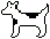 For the LaserWriter there was a print dialog with checkbox options that could all be mixed with each other. We needed some kind of graphic that would show flipping horizontal, flipping vertical, 2% reduction, mirror effects, six or eight kinds of effects. We had this typeface of crazy symbols that came off the Macintosh that Susan Kare had originally done, that had all these crazy critters inside it. I had to alter the dog image pretty significantly, not only to make it larger but to give it a clear front, clear back, clear top, clear bottom, and I had to change the spots on the dog specifically so that when the 2% reduction was in effect you could clearly tell the difference.