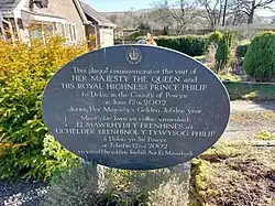Queen Elizabeth II unveiled a plaque at the station in 2002 commemorating her visit during the Golden Jubilee visit to Wales.[2]