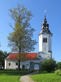 A small church in the settlement is dedicated to the Finding of the Holy Cross and belongs to the Parish of Šentlovrenc. It is a medieval building and contains fragments of 16th-century frescos in the nave.[5]
