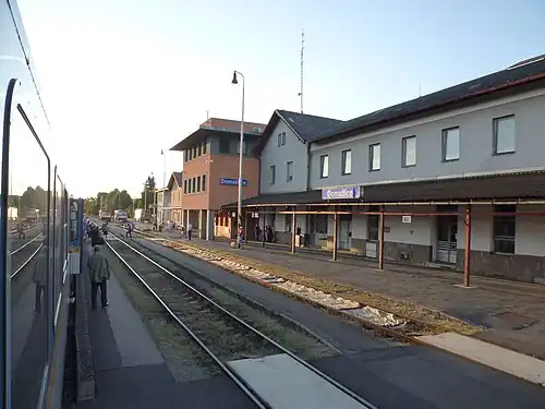 Domažlice railway station (Czech: Železniční stanice Domažlice) is a railway station in the municipality of Domažlice, located in the Plzeň Region of the Czech Republic.