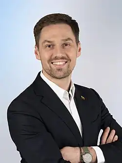 Domas Griškevičius (born 16 January 1985) is a Lithuanian politician of the Union of Democrats "For Lithuania" serving as a member of the Seimas since 2020.[1] From 2015 to 2020, he was a municipal councillor of Šiauliai.[2]