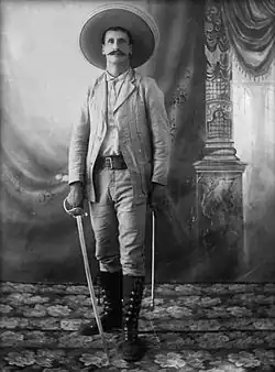 Arrieta León was born in Canelas, in the Mexican state of Durango on August 4, 1874. He was the son of Teófilo Arrieta and Soledad León.[1] He worked as a ranchero in his youth, and earned enough to set up as an entrepreneur muleskinner, transporting goods by mule around the region. Although illiterate, Arrieta León was said to have an excellent memory.[2] His extensive travels provided him with an intimate knowledge of the northwest region of Durango, particularly the Sierra Madre Occidental mountain range.[1]
