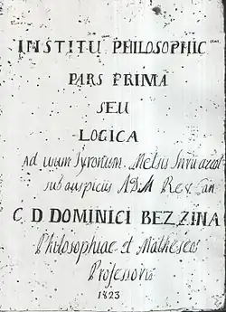 Bezzina's only extant work is called Institutum Philosophicum (Philosophical Teaching).[2] It is still in manuscript form,[3] and contains 171 back to back folios. Unfortunately, the document is certainly incomplete. The extant manuscript is just the first part of a larger work. It is not known how many further part the whole work contained.