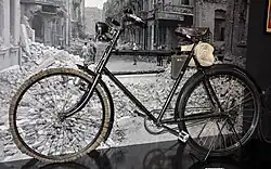 In the same IWM interview tapes, Bruce describes a prank he played on some German soldiers who were guarding a working party of British soldiers. During the aftermath of the 'Tea Chest' escape, Bruce was travelling through Germany on a stolen bicycle and, coming across the file of soldiers being marched down a street, decided to cheer them up. He cycled up to the head of the column shouting out words of encouragement, saying they were not to worry because we were winning the war. On hearing the unmistakable tones of a British officer, the surprised soldiers started to cheer. Before the shocked guards could overcome their confusion and unsling their rifles to take aim at him, Bruce had accelerated around a corner and disappeared.[24][25]