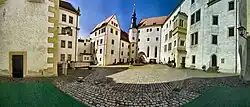On 23 June 1941,[9] Bruce was sent to Oflag IX-A/H, a German prisoner-of-war camp at Spangenberg Castle. Spangenberg Castle (German: Schloss Spangenberg) is a schloss above the small German town of Spangenberg in the North Hesse county of Schwalm-Eder-Kreis.