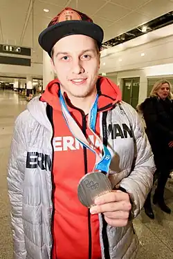 ![]() Kahun with his silver medal at the 2018 Winter Olympics in Pyeongchang | ||