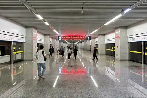 In addition, the station will provide an interchange with Dongguan Rail Transit Line 1, which has reserved a transfer passageway in the concourse.[3]