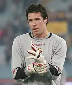 His contract was renewed on 13 April 2006, now worth €1.25 million a season (in gross).[7] In his second season with Roma, he became one of the best goalkeepers of the Serie A.[8] He won the Coppa Italia twice in 2007 and 2008, and also finished as the runner-up of Serie A in 2007 and 2008.