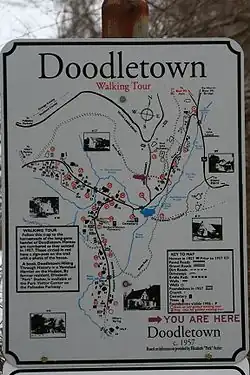 The settlement was a crossroads for soldiers during the Revolutionary War during battles at Bear Mountain's Fort Montgomery when many hundreds of British soldiers marched through the tiny settlement prior to a bloody and significant battle with colonists. The Doodletown Road was used by troops accompanying Mad Anthony Wayne on his successful attack on Stony Point.[2]