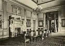 - "The library emerged as a magnificent and functional reflection of the superb quality of the books....The walls were covered in green silk damask and the floor with a buff and green Axminster carpet. The glass-enclosed bookcases were of carved and gilded walnut made by Holland and Sons, each center compartment being 13.6 feet high and 8 feet wide."[9]