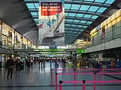 Dortmund Airport (IATA: DTM, ICAO: EDLW) is a minor international airport located 10 km (6.2 mi) east[2] of Dortmund, North Rhine-Westphalia. It serves the eastern Rhine-Ruhr area, the largest urban agglomeration in Germany, and is mainly used for low-cost and leisure charter flights. In 2023 the airport served nearly 3 million passengers. The nearest major international airport is Düsseldorf Airport approx. 70 km (43 mi) to the southwest.