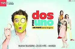 Dos por uno is a Chilean telenovela starring Diego Muñoz, Carolina Varleta and Adela Secall originally aired on TVN and it premiered on March 11, 2013.