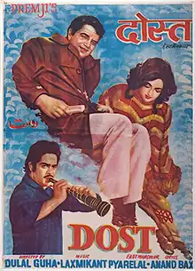 Dost (transl. Friend) is a 1974 Hindi film. Produced by Premji, it was directed by Dulal Guha. The film stars Dharmendra, Hema Malini, Shatrughan Sinha, Asit Sen and Rehman. Amitabh Bachchan makes a guest appearance.[1] The film's music is by Laxmikant–Pyarelal.
