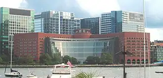Woodlock is known for his interest in architecture and public art.[2] He was a leading figure in the design of the John Joseph Moakley United States Courthouse, a new federal courthouse on the Boston waterfront,[7] working with Justice Stephen G. Breyer on the project.[8] Linda Greenhouse noted that both Woodlock and Breyer took "an intense hands-on role" in the development of the courthouse, which was designed by architect Henry N. Cobb of Pei Cobb Freed & Partners.[9] In 1996, the American Institute of Architects honored Woodlock with its Thomas Jefferson Award for Public Architecture for his efforts.[10]